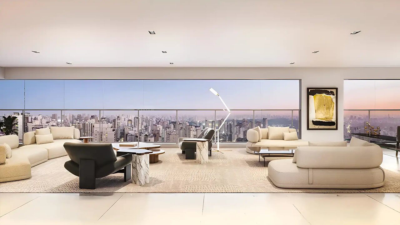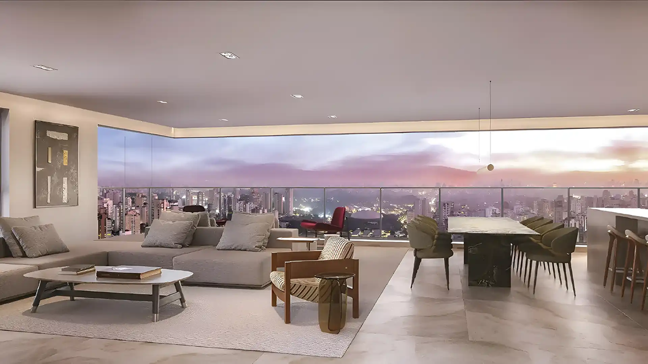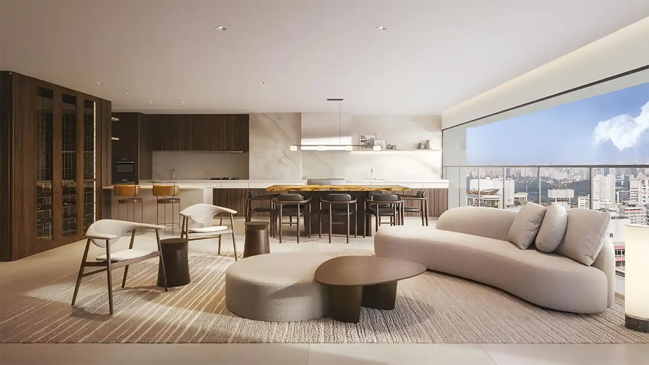 Desfrute de área de lazer sofisticada com wellness, bosque privativo, piscinas, spa, academia, quadra de tênis, coworking e muito mais.